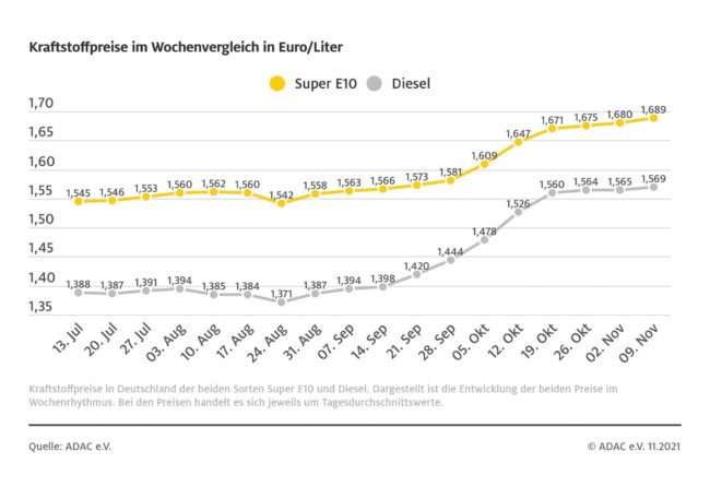 München (ots) Während ein Liter Super E10 im bundesweiten Mittel um 0,3 Cent teurer wird und an den Zapfsäulen 1,692 Euro fällig werden, ist der Preisanstieg beim Diesel vorerst gestoppt. Das ermittelt der ADAC in seinem Wochenvergleich der Kraftstoffpreise und verzeichnet im Bundesschnitt einen Rückgang von 1,2 Cent auf 1,557 Euro je Liter Diesel. Somit…