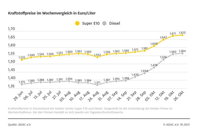 Diesel im Oktober so teuer wie noch nie – ADAC Auswertung: Anstieg gegenüber dem Vormonat um 12,2 Cent – Benzinpreis steigt auf neuen Jahreshöchststand