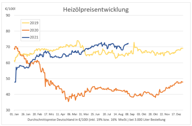 Auch in dieser Woche sind die Heizölpreise im Durchschnitt wieder teurer geworden. Nach wie vor stützen die steigenden Rohölpreise das Preisniveau im Inland und 100 Liter Heizöl kosten Anfang September fast so viel wie an den Spitzentagen im Juli. Im Vergleich zur Vorwoche kosten 100 Liter Heizöl im bundesweiten Durchschnitt heute etwa 88 Cent…