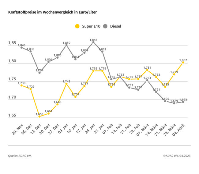 ADAC: Benzinpreis steigt spürbar – Anstieg nach höheren Rohölnotierungen – Differenz zwischen Benzin- und Dieselpreis auf fast elf Cent gewachsen