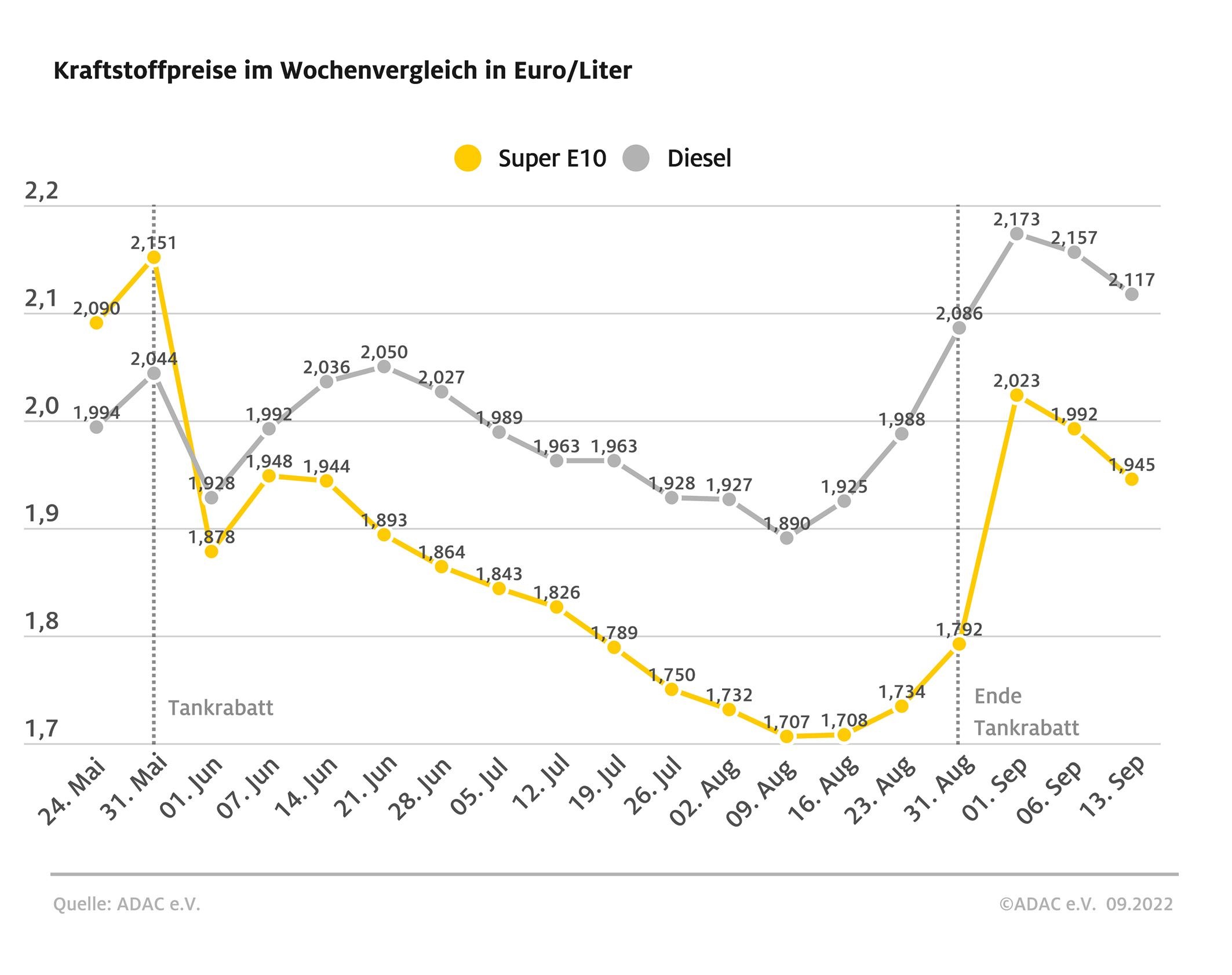 Kraftstoffpreise im Wochenvergleich Quelle: ADAC e.V.