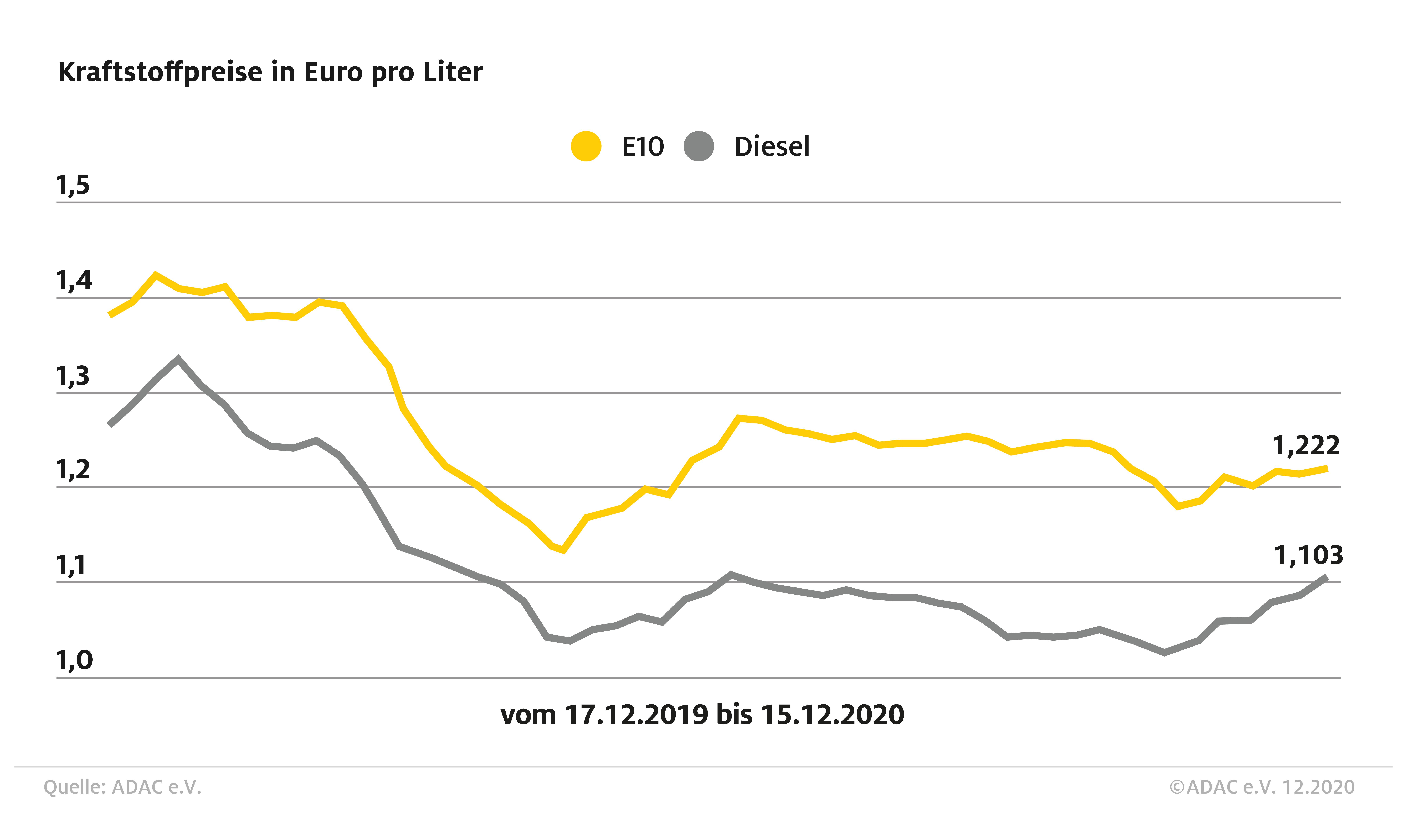 Tanken ist in Deutschland wieder teurer geworden. Vor allem der Preis für Dieselkraftstoff hat binnen Wochenfrist deutlich angezogen. Wie der ADAC mitteilt, kostet ein Liter Diesel derzeit im bundesweiten Mittel 1,103 Euro. Vor einer Woche lag der Durchschnittspreis noch bei 1,088 Euro. Wie die wöchentliche ADAC Auswertung weiter zeigt, kletterte der Preis für Benzin um 0,5 Cent und liegt aktuell bei 1,222 Euro je Liter Super E10.