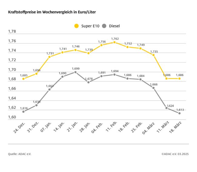 ADAC: Dieselpreis sackt auf neues Jahrestief ab – Nahendes Ende der Heizperiode sorgt für weiteren Preisrückgang – Benzinpreis im Vergleich zur Vorwoche unverändert