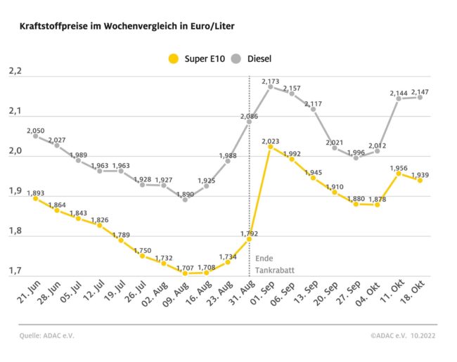 ADAC: Leichte Entspannung an den Tankstellen – Super E10 und Diesel im Vergleich zur Vorwoche um rund fünf bzw. drei Cent günstiger
